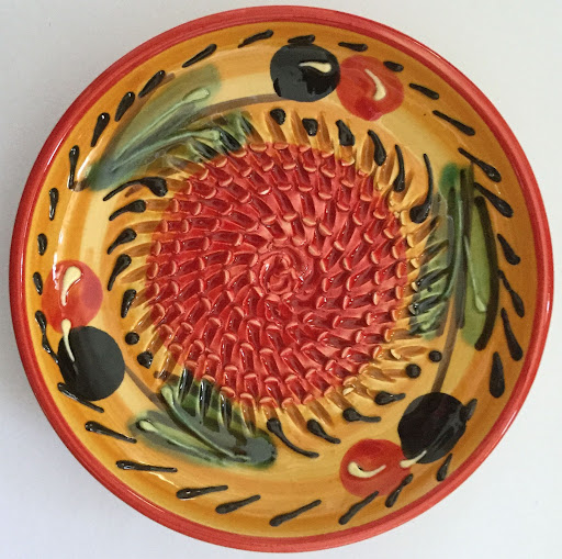 Here's a list of translations. A device having a surface covered with holes edged by slightly raised cutting edges, used for grating cheese and other foods. The tool consists of a box with sharp edges on one side and a flat surface on the other.